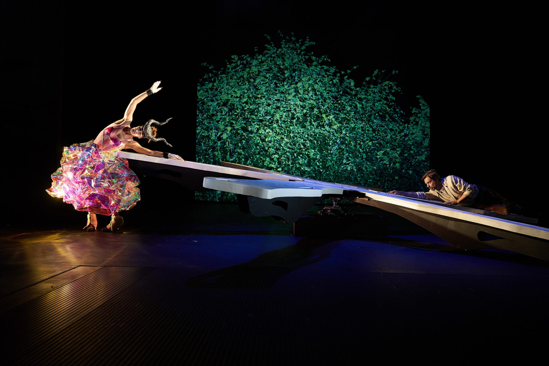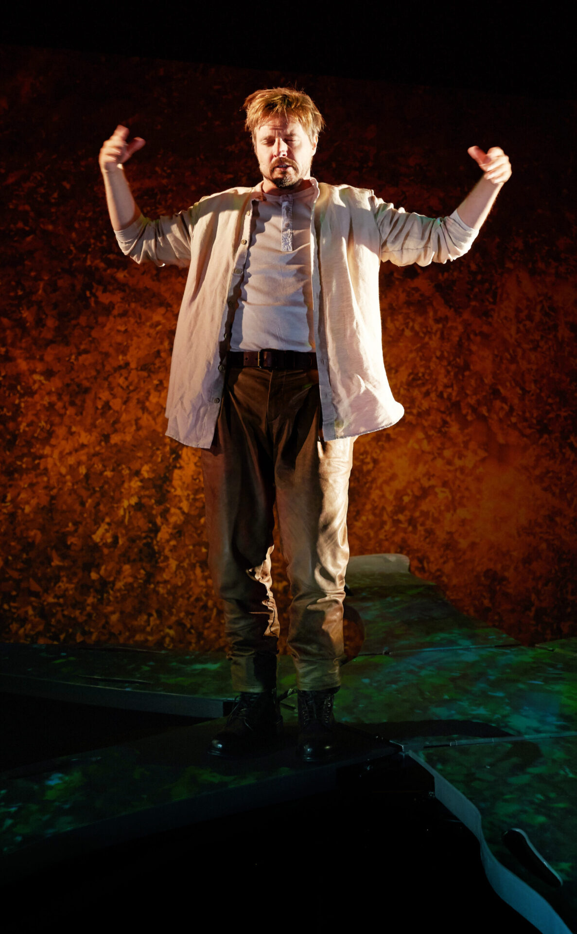 Når teatersjef Arne Nøst denne høsten gir seg i kast med Hamsuns ikoniske verk har han både regi, scenografi og musikk. Han vektlegger drømmeperspektivet i Pan og lar hele handlingen utspille seg i en drømmeaktig fantasiverden, der personene dukker opp og forsvinner igjen i strid med all logikk.