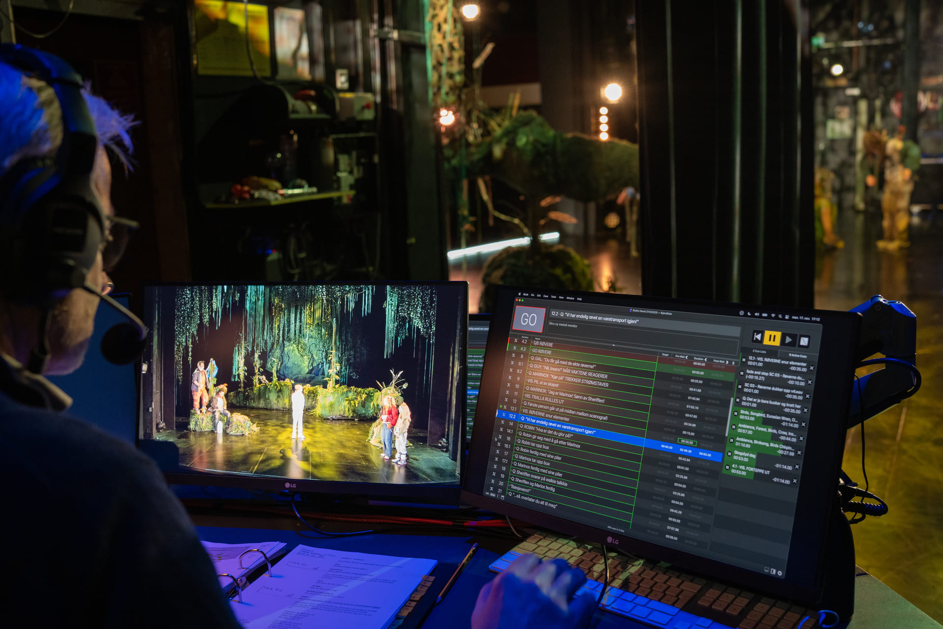 – Når jeg avvikler lyd kjenner jeg musikken og lydeffektenes intensjon og hvilken følelse den skal understreke for publikum. Under forestillingen ser og lytter jeg til skuespillernes og samspillets rytme. Her kan jeg bidra som usynlig medspiller med å henge med på skuespillerens puls i et øyeblikk og kjøre lyden et skjønnsmessig halvsekund tidligere eller senere enn vanlig.