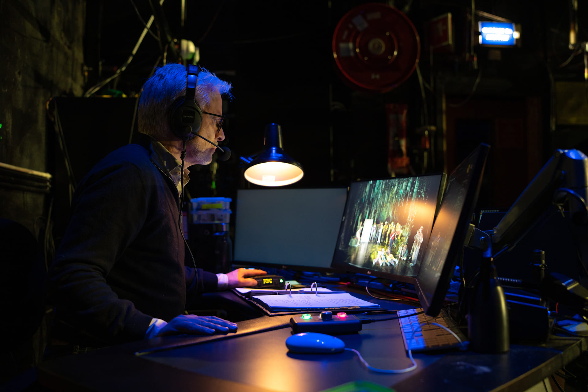 Henrik sitter klar til å sørge for at alt han skal igangsette av effekter harmonerer med det som skjer på scenen akkurat den unike kvelden.